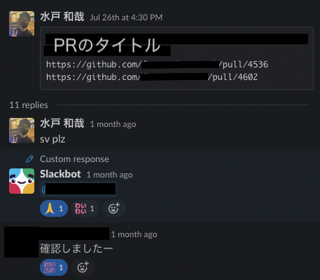 sv plz→ サーバーエンジニアの誰かにメンションfr plz→ フロントエンジニアの誰かにメンション